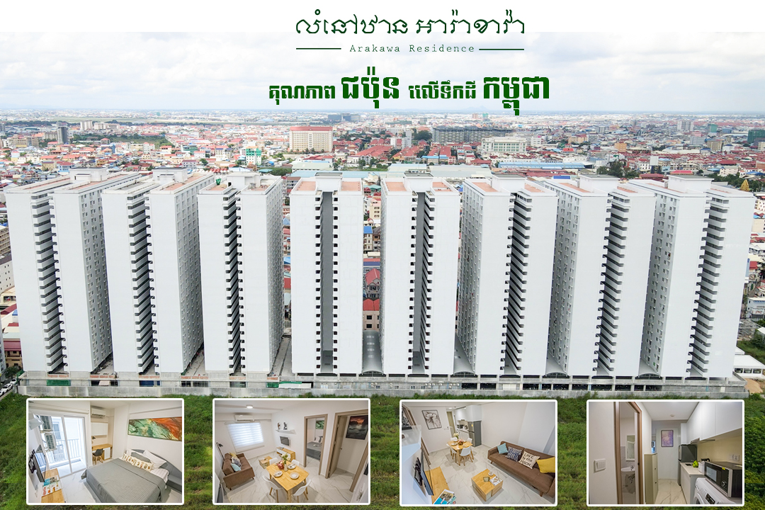 Arakawa Residence is the second project under Arakawa Co., Ltd after Bellevue Serviced Apartments. Unlike Bellevue, Arakawa Residence is for sale not lease. The 21-storey condo consists of 16 tall buildings standing in a beautiful straight line. The construction of this project started in 2017 and continued to the completion in early 2023. The project’s vision is to help Cambodian people to be able to afford homes in the city center as the pricing of the condo is clearly reasonable. The success of the project has been reflected with the number of units sold to residents and there is an increasing number of residents moving in every day making Arakawa Residence one of the most successful affordable housing projects in Cambodia.